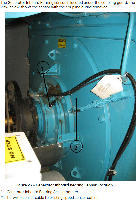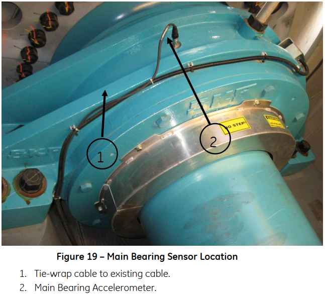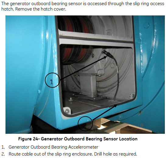 For a more detailed view on the sensors, the following images show them installed in a real wind turbine. These images were extracted from the Bently 3701 operations and maintenance manual saved in the Performance Sharepoint.